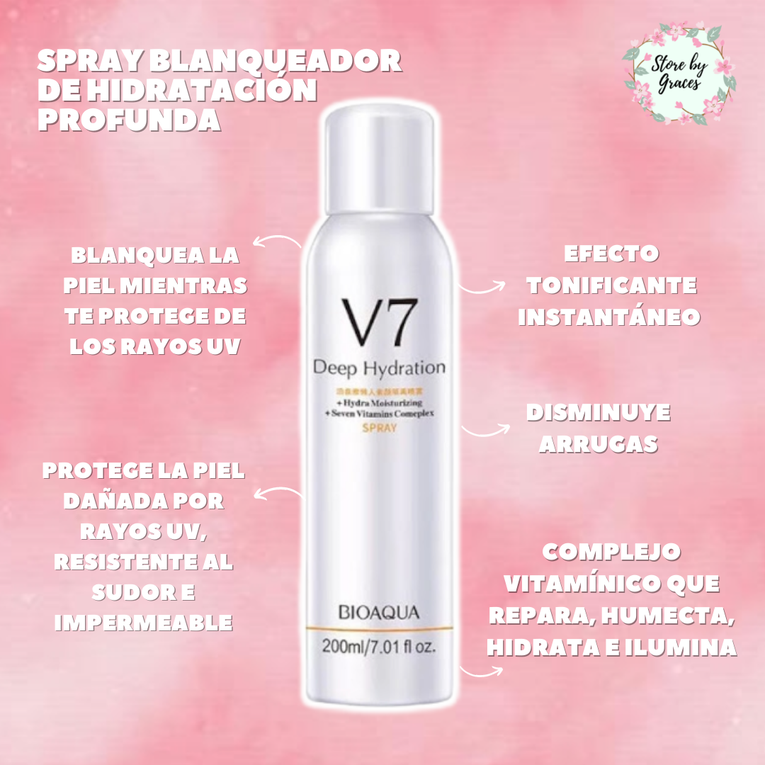 Spray (V7)Hidratante que brindara a tu piel un efecto instantáneo blanqueador para darle un tono uniforme y más claro.